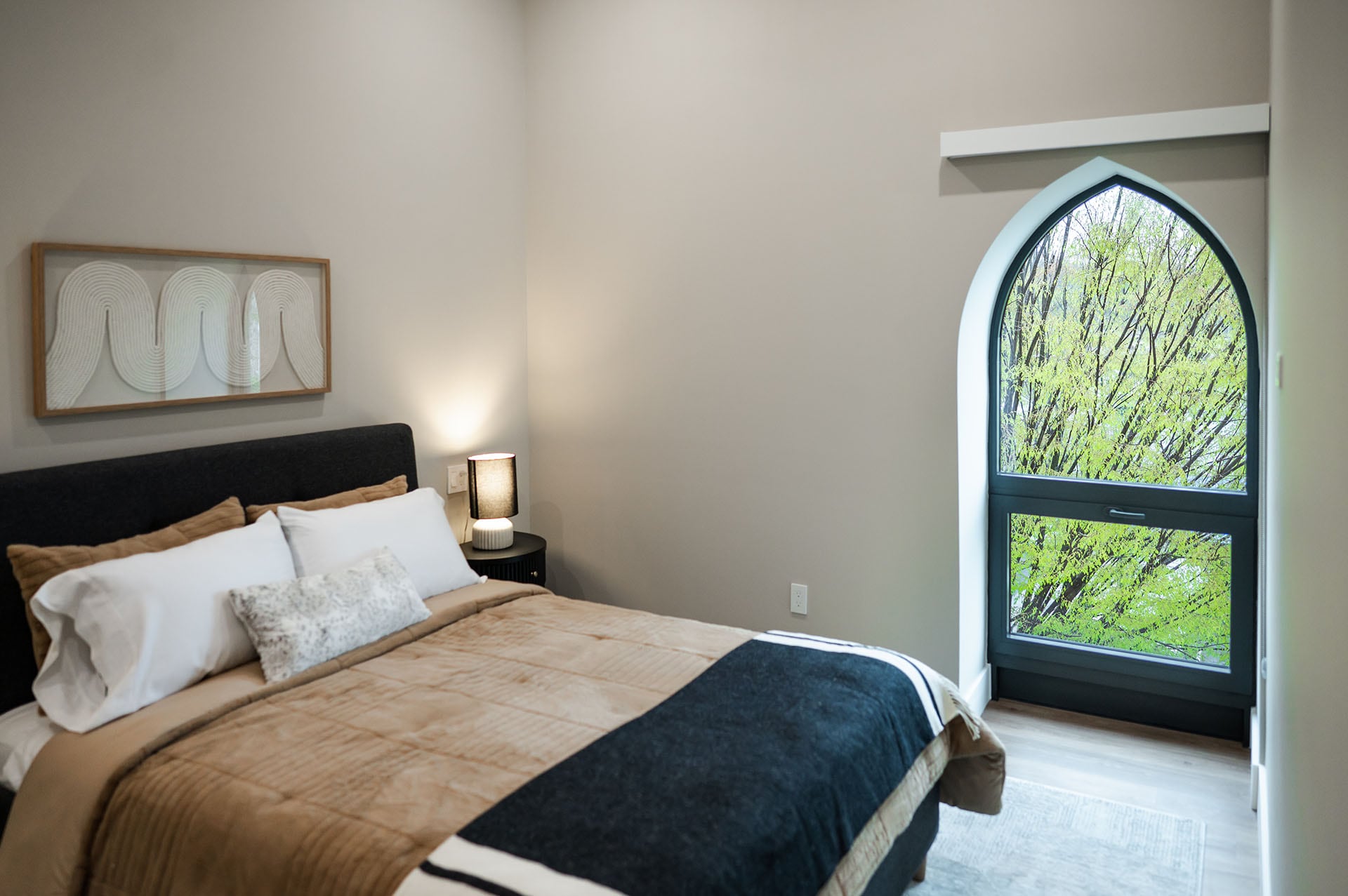 - On 2nd floor, all apartments feature unique triangular arch shaped windows