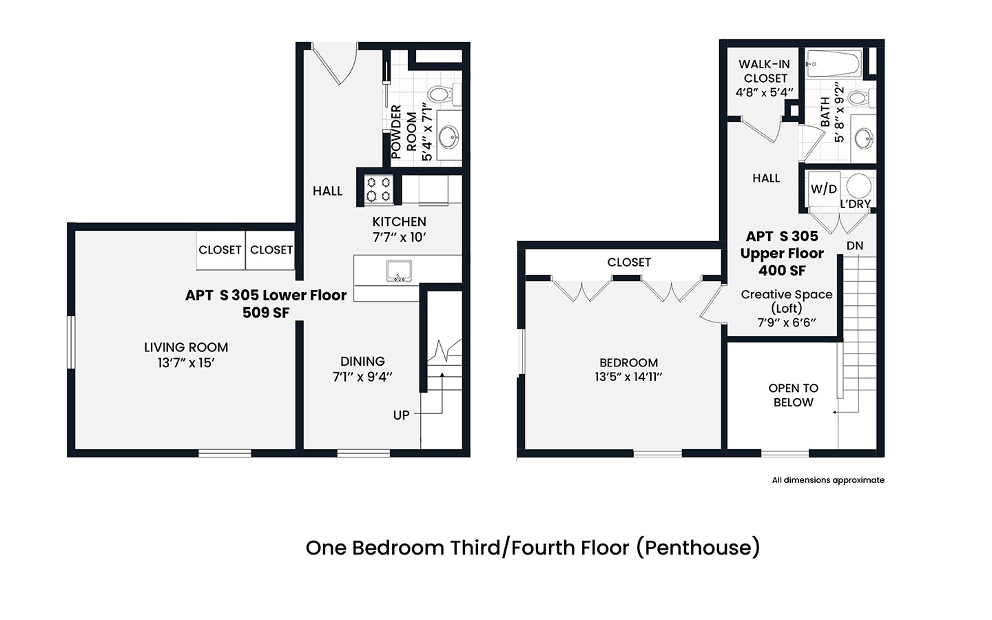 - Bi-Level Ceilings in Living Room - All VIP Penthouse Features Included - 2-Story Townhome Style Living - Extra Powder Room (1.5 Baths) - Extra Creative Space (Loft) - Premium View - One of only 8 Penthouse Apartment Homes at the Roe